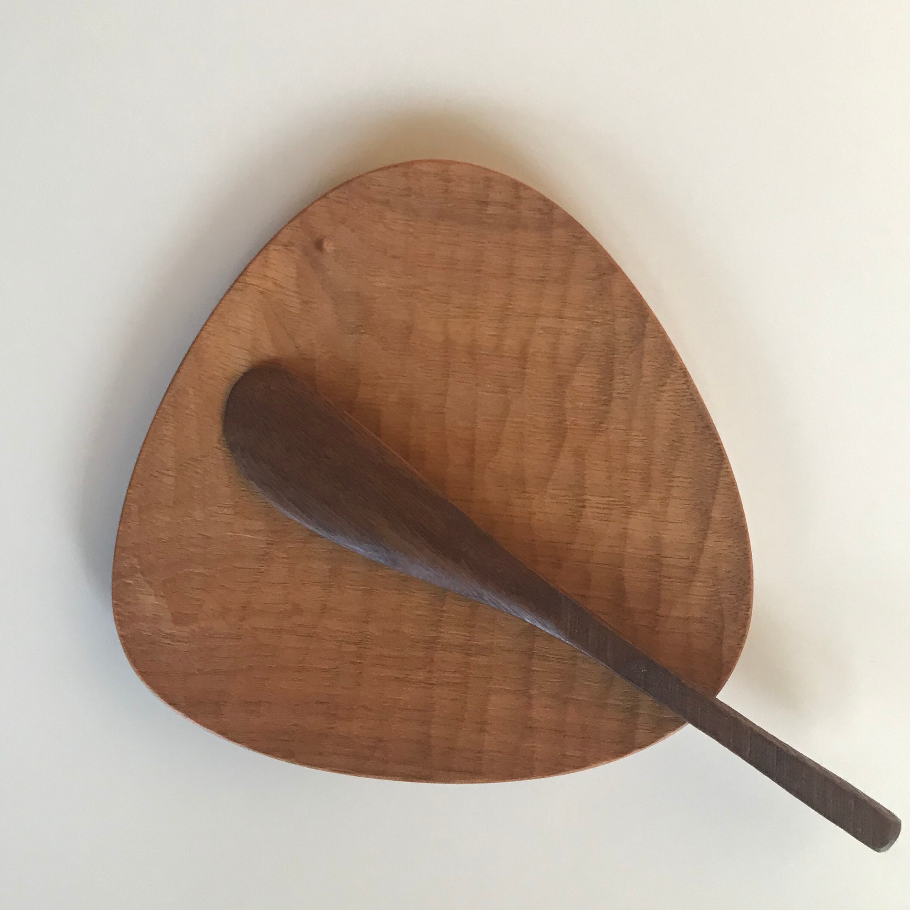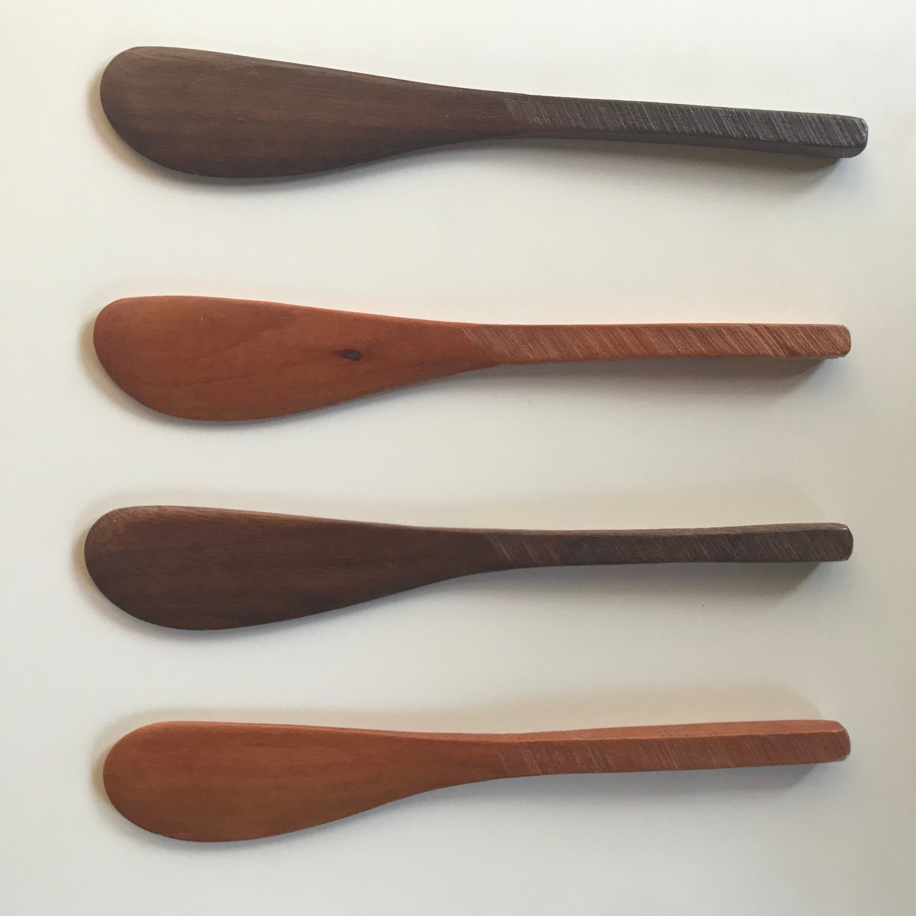 チェリーとメープルとブラックウォルナットのバターナイフです。クルミオイルで塗装しています。